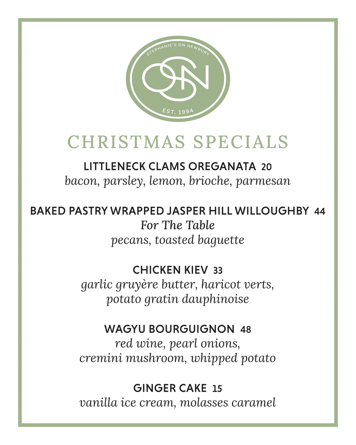 Stephanie’s is casual elegance at its best with one of city’s most fashionable sidewalk cafés, popular bar and lounge overlooking Exeter Street and cozy sky-lit dining spaces. Our team at Stephanie’s is friendly and hospitable and eagerly anticipates your next visit.